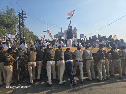 गरियाबंद में सियासी भूचाल कोर्ट से मिली राहत तो सड़कों पर उतरा कांग्रेस का सैलाब भाजपा दफ्तर का घेराव ।