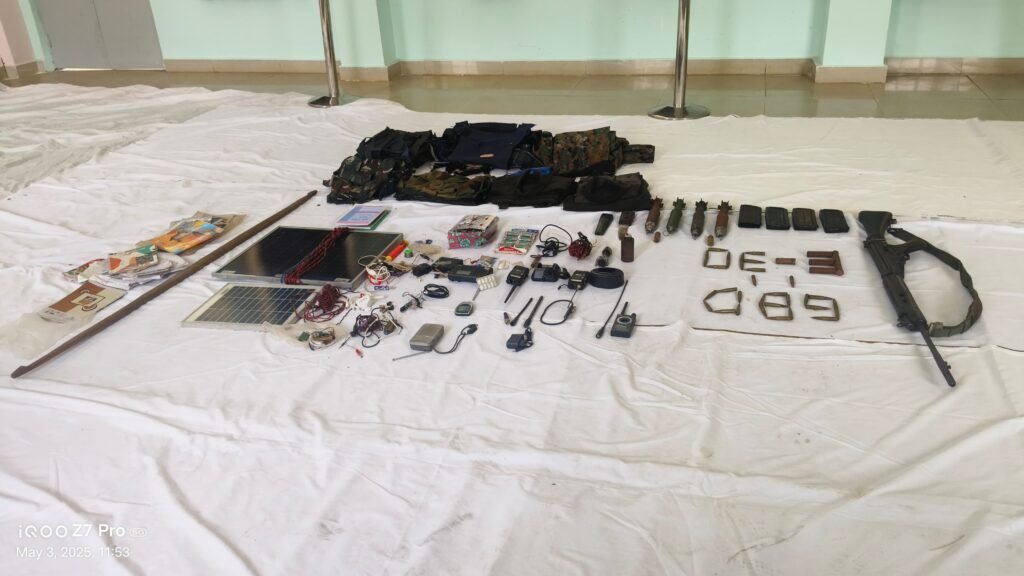 करते हुए बताया कि घटनास्थल से SLR राइफल, 12 बोर की गोलियां, मैगजीन, GBL, IED, दवाइयां और दैनिक उपयोग के सामान भी बरामद किए गए हैं। यह मुठभेड़ सुरक्षा बलों के लिए एक बड़ी रणनीतिक जीत मानी जा रही है।