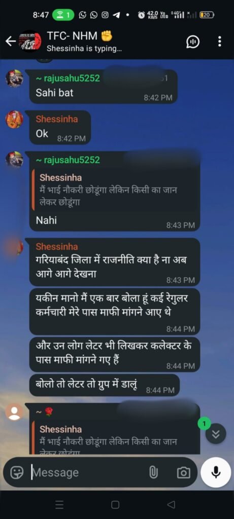 रायपुर के बाद गरियाबंद में गार्डराज,व्हाट्सएप ग्रुप में खुलेआम संविदाकर्मियों और डाक्टरों को धमकी