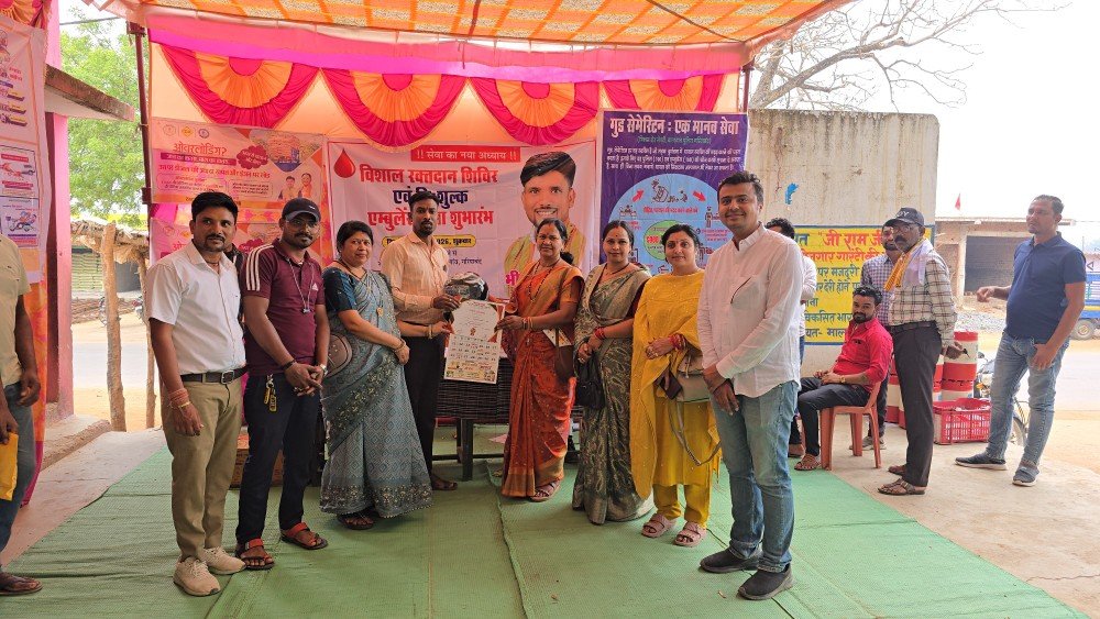 रक्तदान शिविर मालगांव ऐतिहासिक रक्तदान शिविर,भीम निषाद ने 28वीं बार किया रक्तदान, आत्मसमर्पित नक्सली सुनील और जानसी ने मुख्यधारा में जुड़कर बढ़ाया रक्तदाताओं का उत्साह।