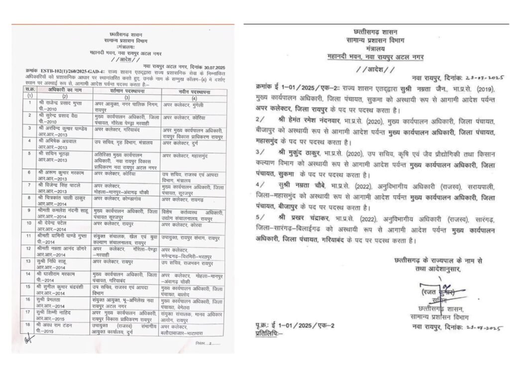 गरियाबंद तबादला 2 दिन 2 ट्रांसफर