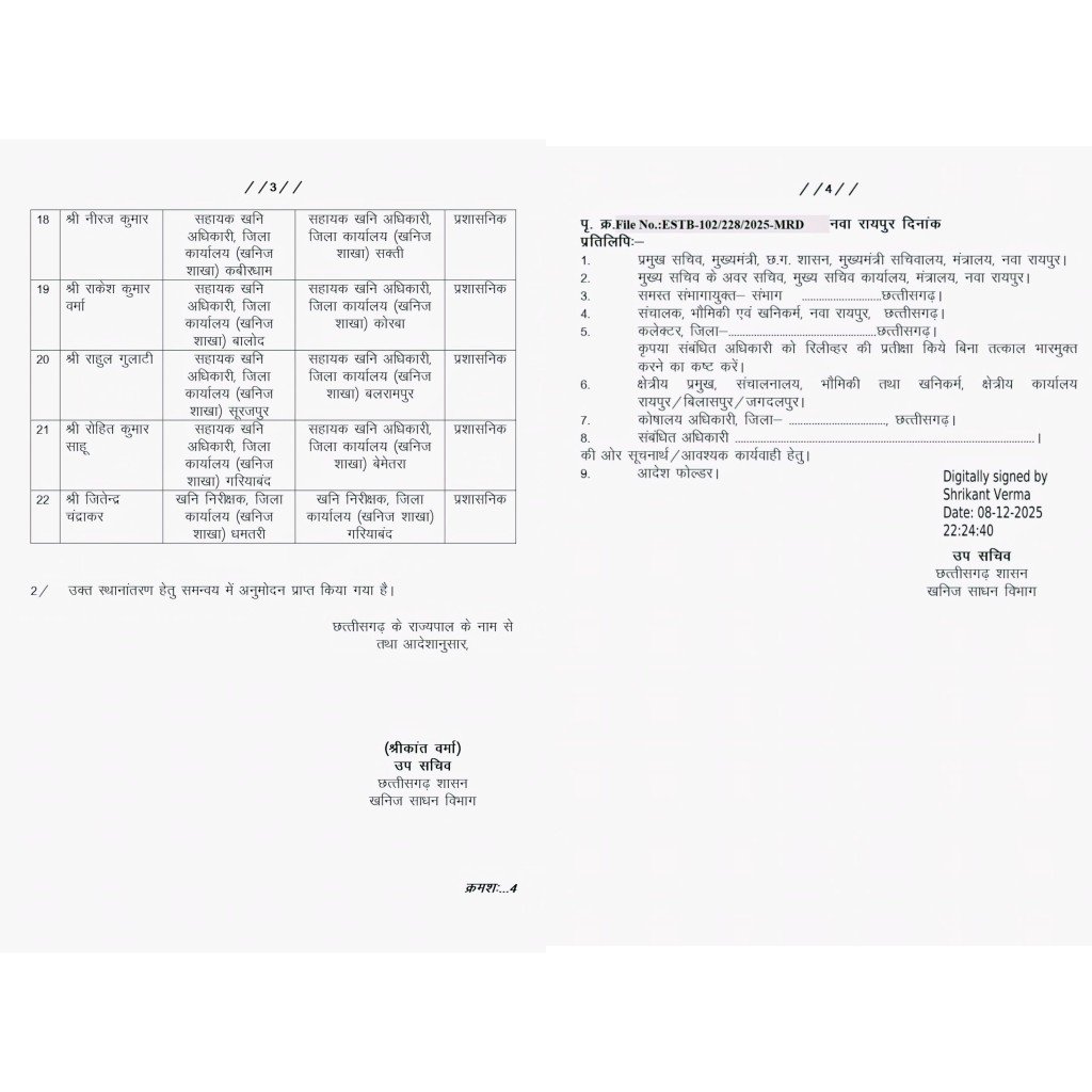 यह भी पढ़ें …. लगातार विवादों में रहे गरियाबंद खनिज अधिकारी रोहित साहू बताएं गए अर्चना ठाकुर बनी नई सहायक अधिकारी