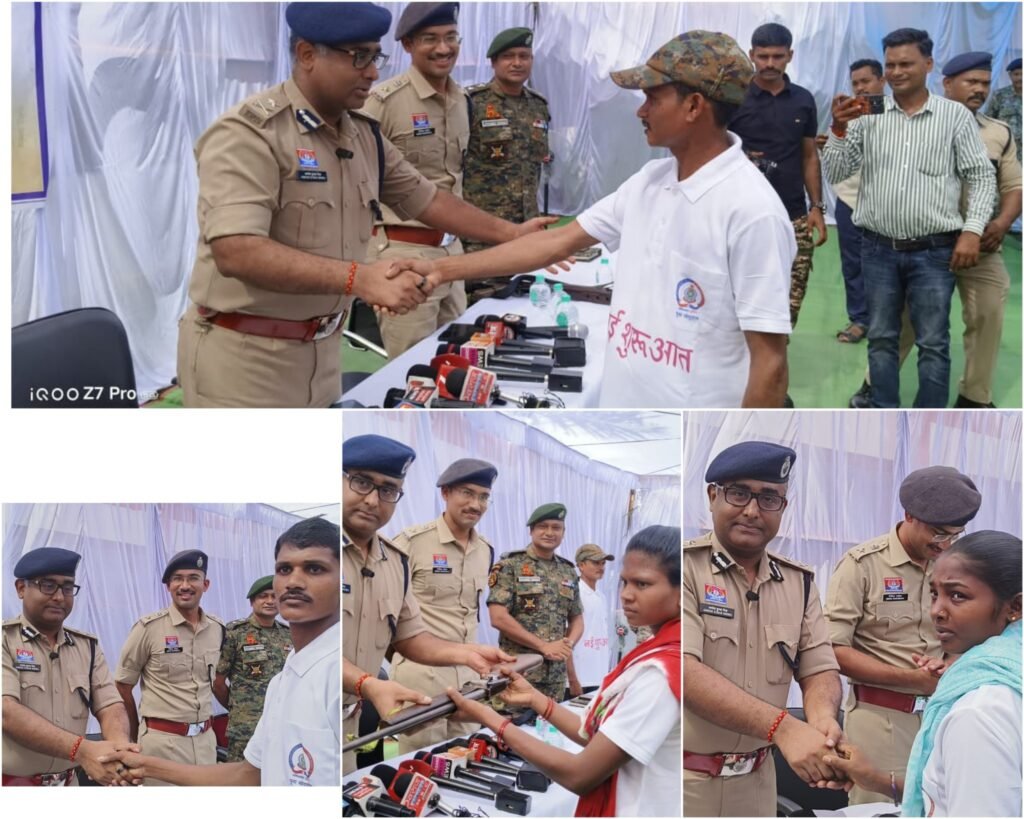 गरियाबंद में 4 नक्सलियों ने हथियारों के साथ किया आत्मसमर्पण जाने कौन है चारों नक्सली और किस कैडर के है ,और कितना इनाम है ।