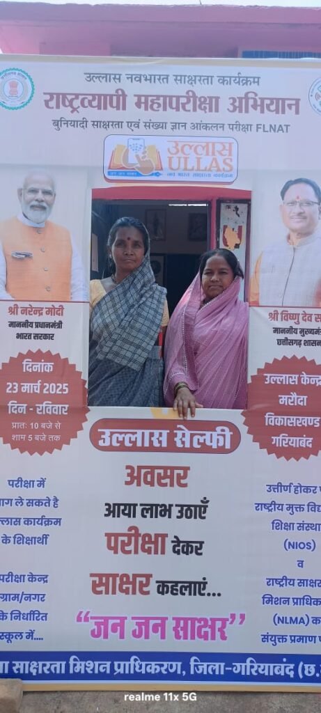 गरियाबंद, 23 मार्च 2025। साक्षरता की ओर बढ़ते कदमों को प्रोत्साहित करने के उद्देश्य से मरौदा ग्राम में उल्लास साक्षरता महापरीक्षा का आयोजन किया गया। शासकीय प्राथमिक शाला मरौदा में आयोजित इस परीक्षा में 45 असाक्षरों ने भाग लिया। परीक्षा केंद्र पर पहुंचने वाले परीक्षार्थियों का तिलक लगाकर आत्मीय स्वागत किया गया, जिससे उनके चेहरे पर एक नई ऊर्जा और आत्मविश्वास झलक रहा था। परीक्षा के उपरांत कई परीक्षार्थियों ने अपनी खुशी को सेल्फी के जरिए भी कैद किया।