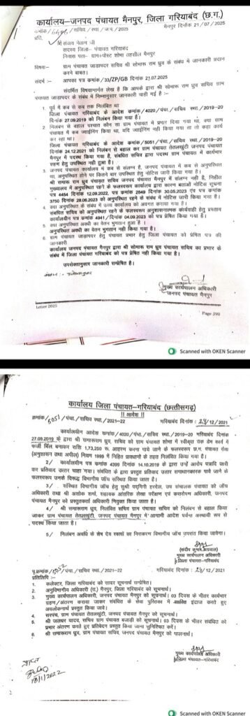 गरियाबंद जिला पंचायत नो वर्क नो पे के बावजूद लाखों का कर दिया भुगतान